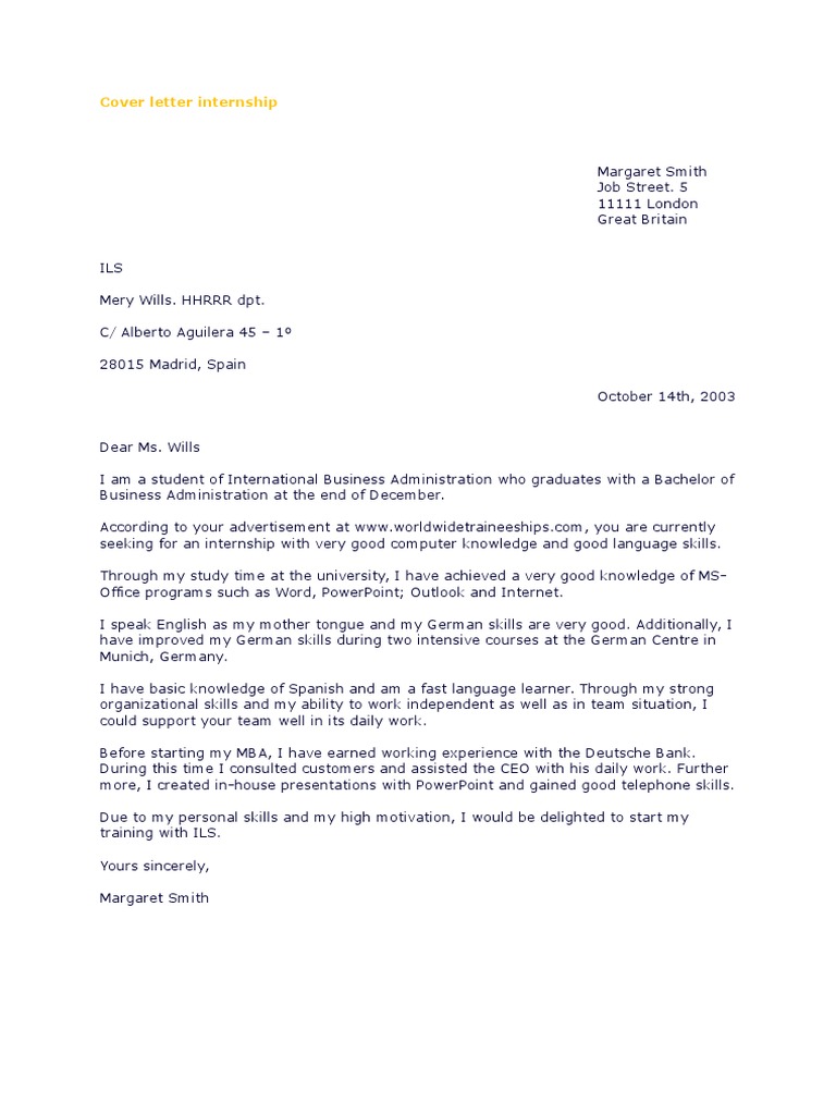 We did not find results for: Check spelling or type a new query. Cover letter for internship in germany. Maybe you would like to learn more about one of these?
