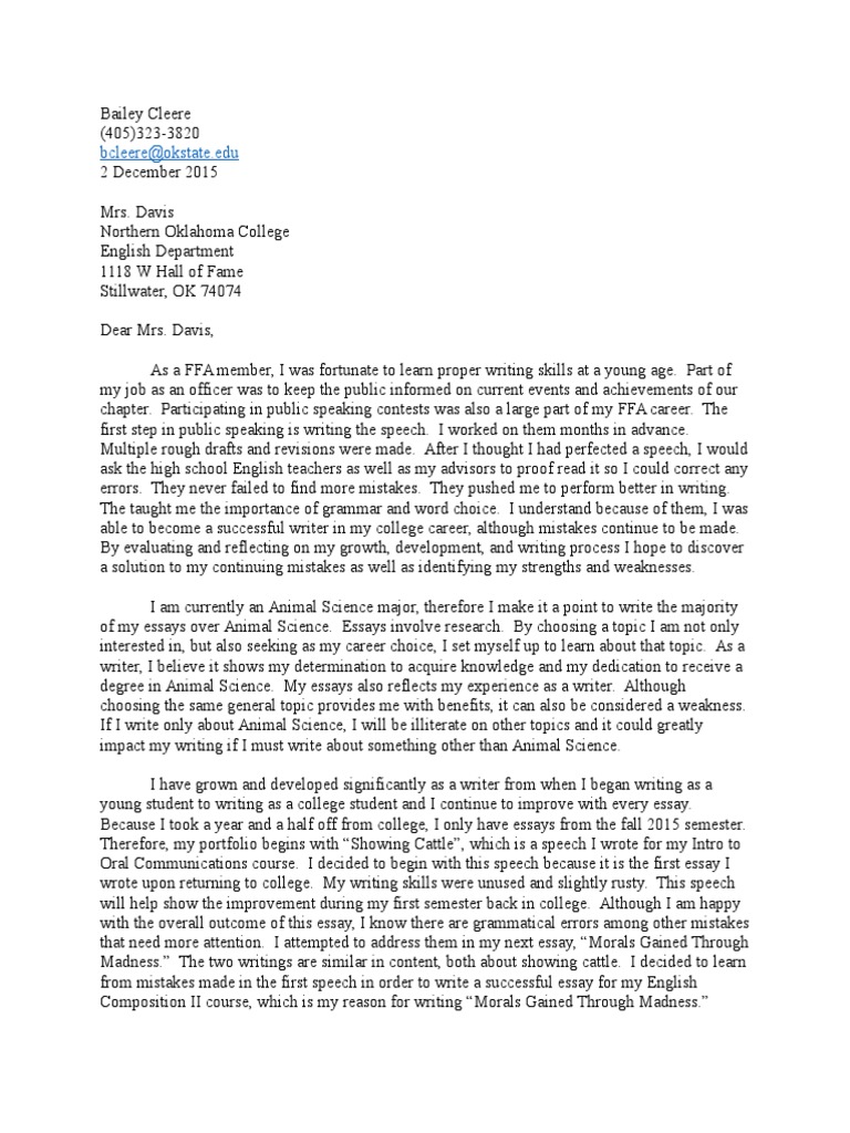 SVSU - Sample Documents - Sample Portfolios from jonathancamerosportfolio.weebly.com The amount of time it took for me to revise an essay directly correlated to how many corrections my instructor made on my first draft. Portfolio cover letter sample bire 1andwap com english examples page example professional portfolio view. Special needs teaching assistant cv sample myperfectcv. Dec 15, 2014 · english 101 portfolio. Cover letters should be around three paragraphs long and include specific examples from your past experience that make you qualified for the position dec 08, 2014 · cover letter. I have learned to notice my strengths and weaknesses and to learn from all of them. A professional greeting that addresses the hiring manager by name. Want to discover how to write a cover letter?